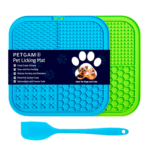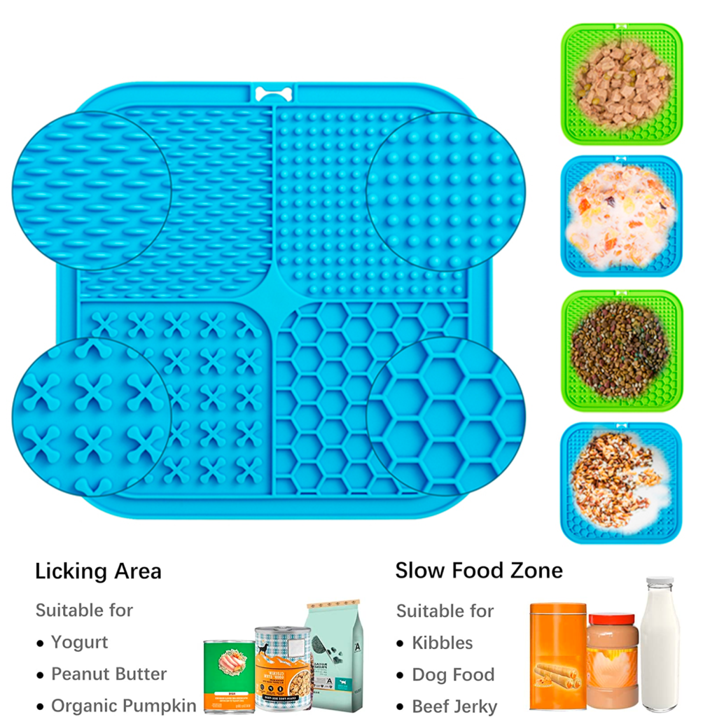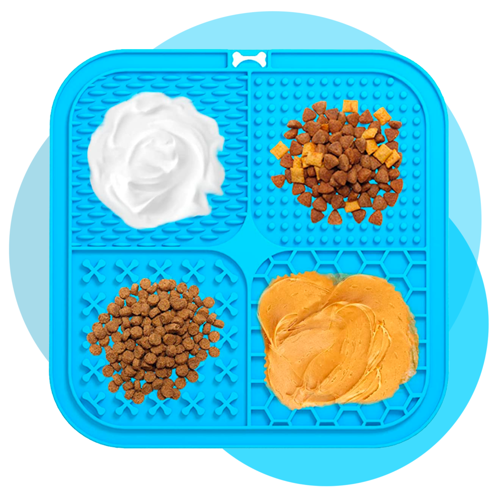 Serve yogurt, peanut butter, spreadable treats and all organic and healthy treats. Food settles on the mat's surface, slows the feeding dramatically and prolongs enjoyment. Our dog lick mat large breed and dog mind stimulating toys textured surfaces promote pleasurable licking action, which generates saliva helping protect your pet's teeth and gums.