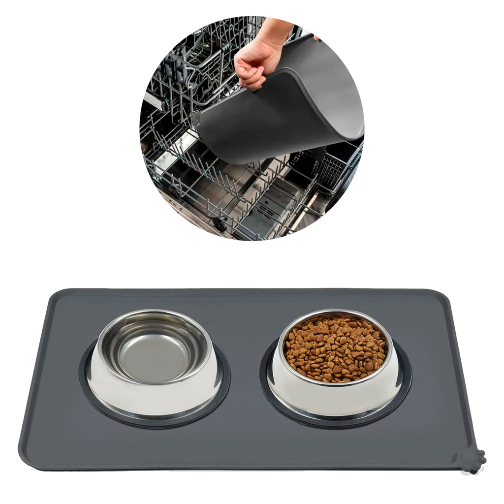 This food mat has smooth surface, and it is much easier to clean than textured mats. Just wipe it with a wet cloth, wash it by hand or in a dishwasher.