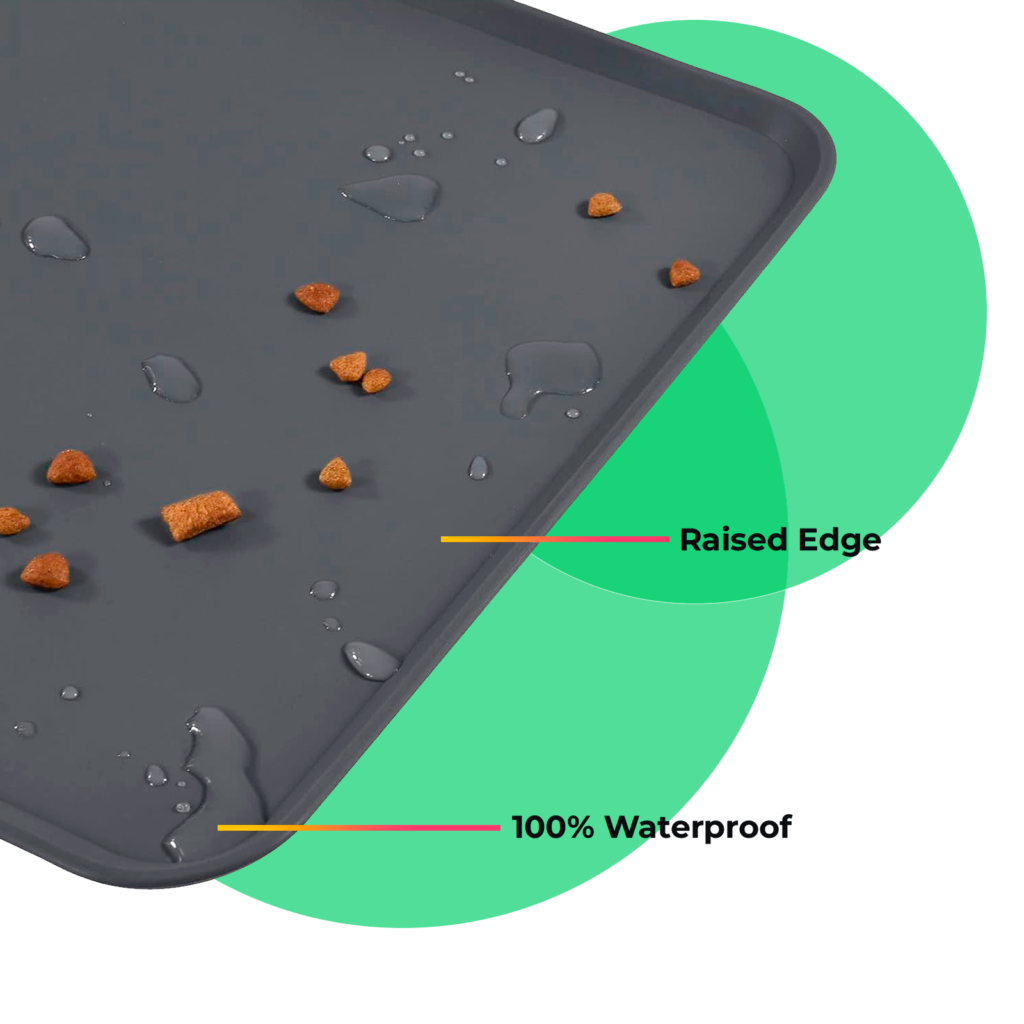 Super high edge (1”) of mat keeps the spilled food and water on the mat and away from your floor. Silicone is naturally 100% waterproof